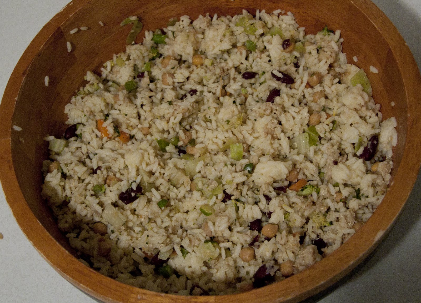 I cook up the rice in 8 cups of water and 4 cups of beef or chicken broth. The oatmeal I cook in 6 cups of water. A food processor becomes your best friend with all of the veggies. I chop them up then throw them in 1 or 2 veggies at a time and pulse them enough to get them small enough. If you add too many veggies at once by the time they’re all chopped up you’ll have made veggie stew. The processor is also great for the meat. If you don’t have ground burger then cutting up a steak and throwing it in the food processor for a few minutes will mince it enough to make it easy to mix in to their food. I heat up the beans, cook the eggs and stir fry the veggies in oil and garlic.