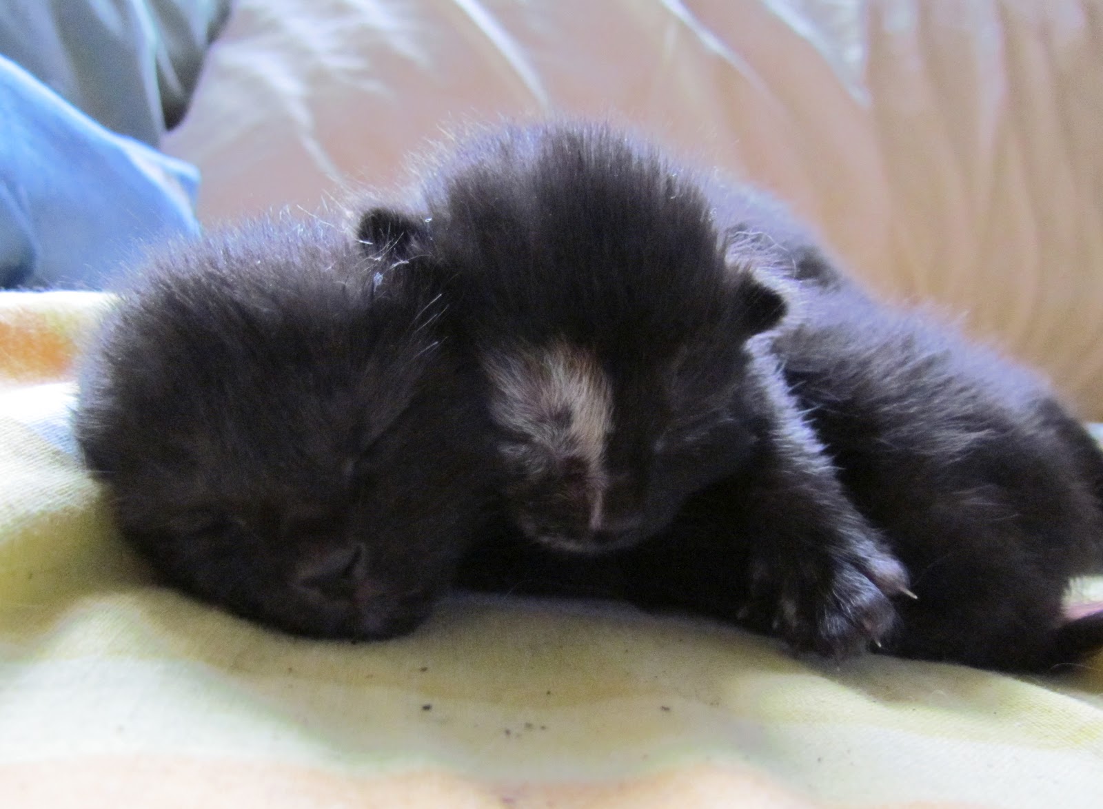 Well we certainly underestimated Cali’s due date! Hubby and I had thought by her size that kittens would be coming around the beginning of September so we were shocked when she delivered so early!